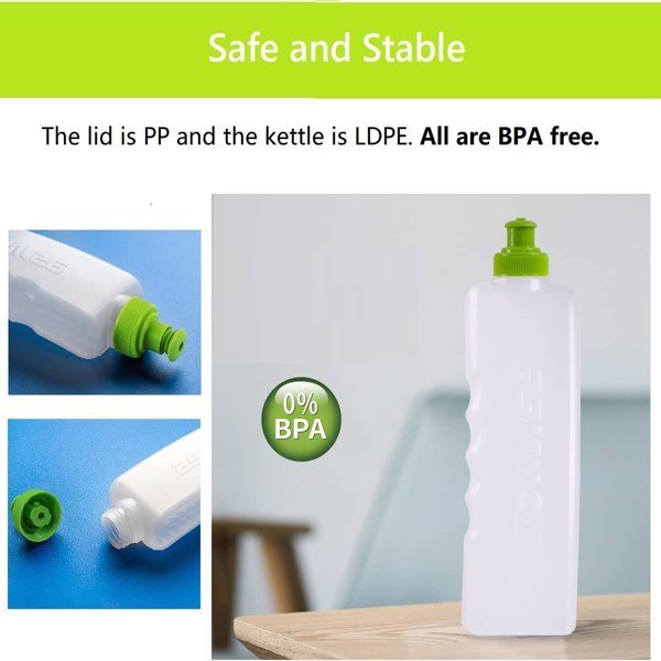 • ✅[Running Water Bottle]100% BPA free.Silicone Cap + Food Grade Silicone Sucking Mouth + Food Grade PP5 Body